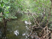 Stepping from the lobby you’re confronted with an enormous mastodon skeleton, retrieved from north Florida, and the largest remains of the species ever discovered in North America. A few paces more and you’re taken from 12,000 years back to the present, and encircled in the serenity of the current Clyde Butcher black and white photographic exhibition of Florida wilderness.